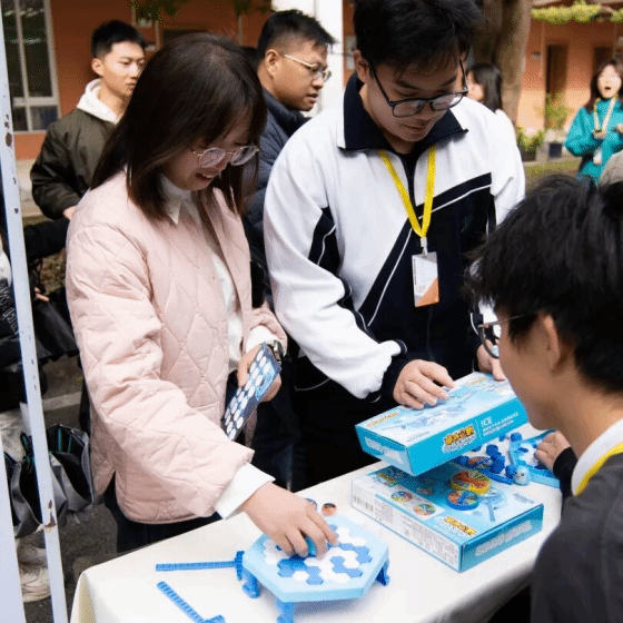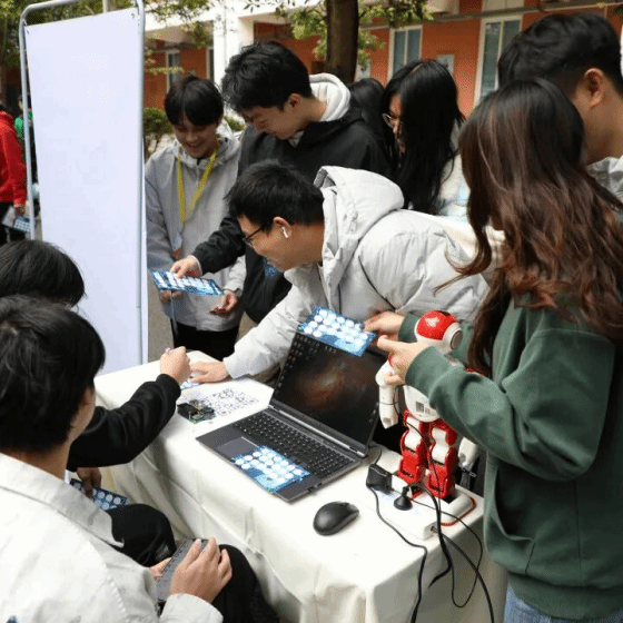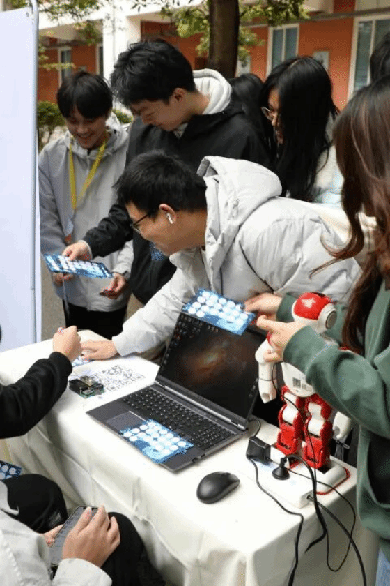 随后进行科技游园会,本场科技游园会邀请了企业:广州腾科网络技术有限公司、广州粤嵌通信科技股份有限公司;由实验室:广东省普通高校工程技术中心、南風战队、AE智能车实验室、翔宇航模队;学生组织:团委、学生会、计算机协会、数学社摆摊进行科技宣传和科技互动。现场并且设置了非遗文化活动体验、科技手工制作等摊位。同学们通过互动打卡,可获得印章。集齐15枚及以上印章的同学可兑换“智汇青春”限量纪念品,这不仅是一份礼物,更是践行优良学风的见证。