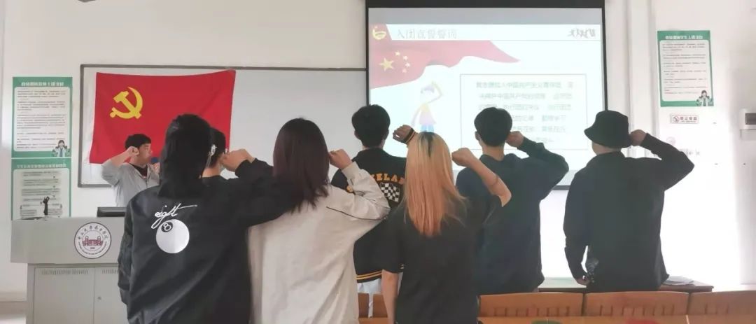 最后大家重温了入团宣誓誓词,表明我们入团的坚定决心,表明愿意为共产主义事业和社会服务做出自己的贡献表明中国的新青年团员们愿意在共青团的带领下不断成长,不断进步。