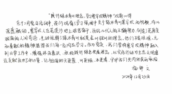 2024年12月25日,电气学院学生第四党支部组织开展观看 “践行绿水青山理念,学习塞罕坝精神”。