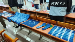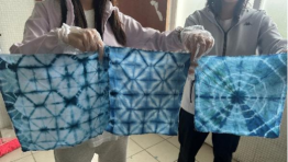 活动现场,扎染技艺的核心技法被细致拆解:从古朴的捆扎固定,到精巧的夹扎塑形,再到灵动的缝扎勾勒,每一步操作都清晰呈现。大家手持白色坯布,先围绕创作主题细致折叠、精准捆绳,指尖的力度里藏着对工艺的敬畏;佩戴好防护用具后,又依规范将扎好的坯布浸入环保染料,看着素白布料在染缸中慢慢蜕变、渐染出鲜活色彩,满是期待。染色完成后,小心拆解绳结、耐心冲洗浮色,一件件纹路各异的扎染作品逐渐成型。从素净的坯布到色彩斑斓的成品,这一蜕变不仅展现了扎染工艺的奇妙,更让大家在亲身体验中深化了对传统非遗文化的认知与喜爱。