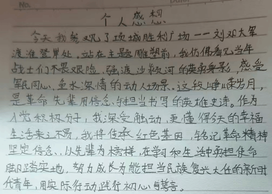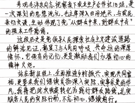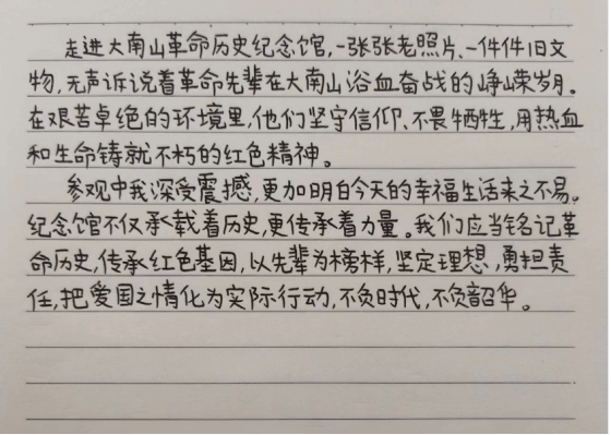 红色情怀,字字句句饱含对革命先烈的崇敬,更彰显了赓续红色血脉、勇担时代使命的坚定决心。一笔一画间,是对革命历史的深刻理解,是对初心使命的深刻感悟,更是对马年新程勇毅前行的郑重承诺。