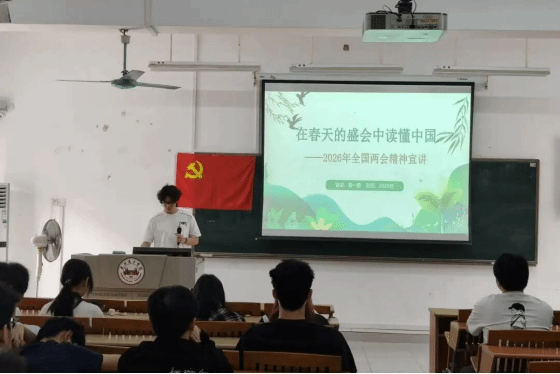 春风浩荡,万象更新。为深入学习贯彻2026年全国两会精神,引导全体党员和积极分子深刻把握“十五五”开局之年的历史方位与使命担当,工学院学生第三党支部组织开展“在春天的盛会中读懂中国”主题党日活动。本次活动通过专题宣讲、视频学习、知识问答等形式,推动两会精神入脑入心、落地生根。