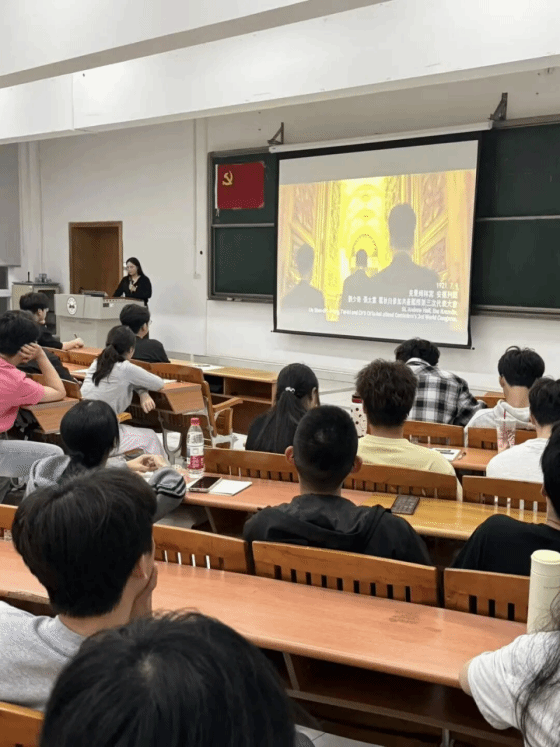 然后,老师围绕党的最高理想和最终目标是实现共产主义这一核心主题展开授课。从生产力发展、社会形态变革等多个维度,系统阐释共产主义的科学内涵与实现路径,帮助学员们深刻理解党的纲领,筑牢对共产主义远大理想的认知根基。为帮助同学们更好地理解,王老师组织同学们观看红色主题影片,通过珍贵的历史影像,带领学员们回望党的奋斗历程,感受革命先辈为理想信念不懈奋斗的精神力量。