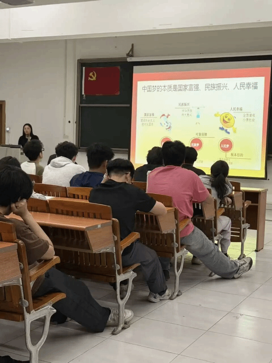 最后,老师通过讲解中国梦的本质:国家富强、民族振兴、人民幸福。让大家深刻认识到中国梦是国家的梦、民族的梦,也是每一个中国人的梦,更是新时代青年应当扛起的责任与使命。