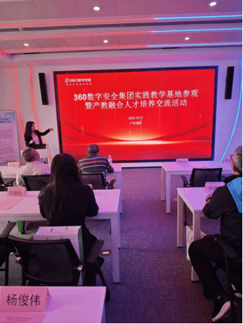 为深化产教融合校企合作,提升人才培养质量,探讨行业前沿技术及人才培养新趋势,2025年10月31日,电气与计算机工程学院软件工程专业负责人杨俊伟老师参加了“360 数字安全集团实践教学基地参观暨产教融合人才培养交流活动”。