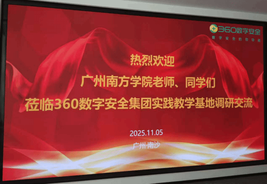 为进一步加强实践基地建设、推动校企协同育人,2025年11月5日,电气与计算机工程学院教师杨俊伟、黄中友、杨斌、马育青、徐春杰带领学生赴360数字安全集团(广州南沙)进行访问交流。双方围绕实践教学基地合作、人才培养、岗位需求、就业等议题展开深入探讨。