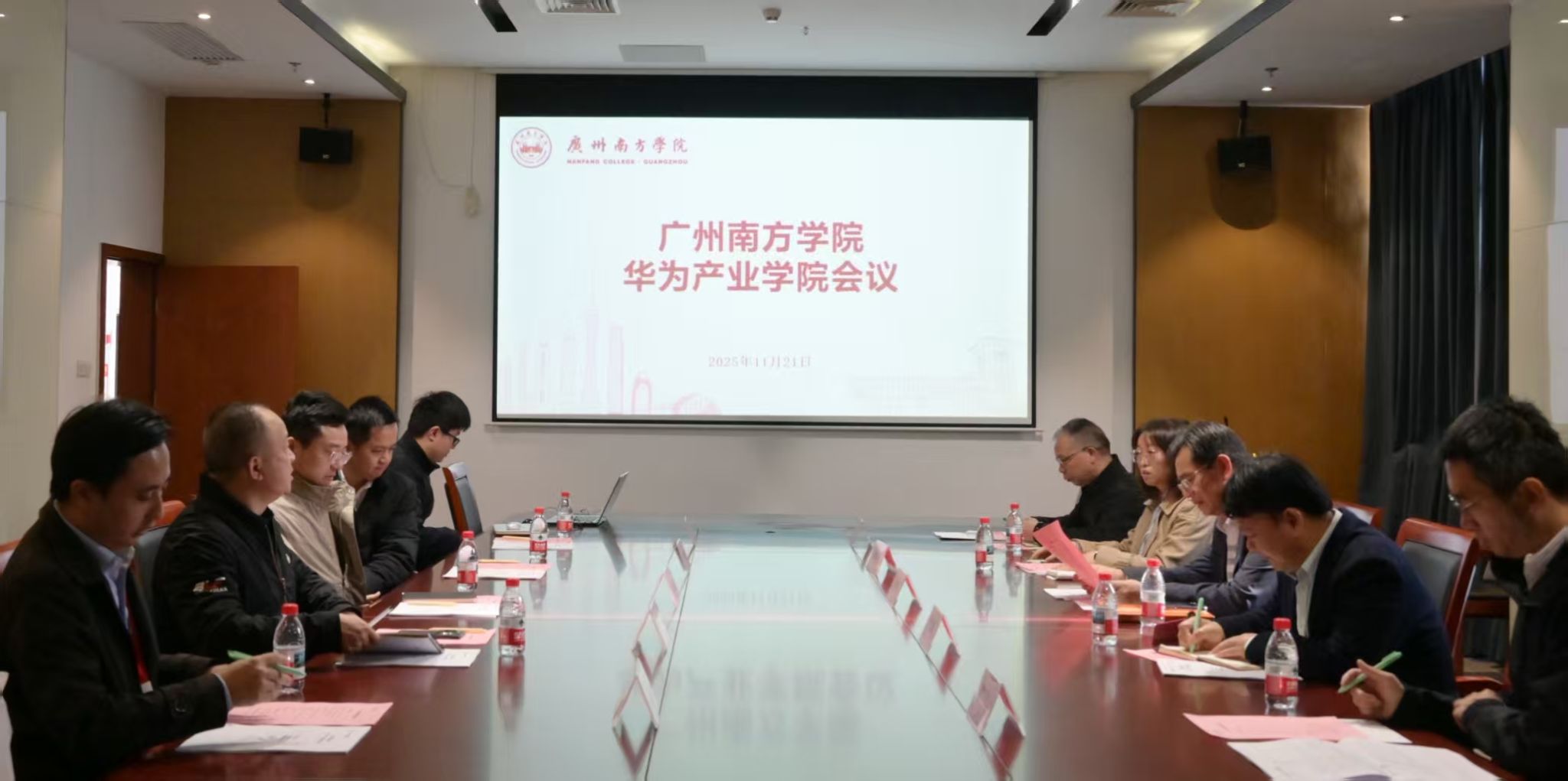 为深入贯彻产教融合、科教融汇国家战略,推进产业学院建设,2025年11月21日,广州南方学院工学院与华为技术有限公司(以下简称“华为公司”)、广州腾科网络技术有限公司(以下简称“腾科公司”)在学校中和楼第三会议室联合召开华为产业学院推进会议。广州南方学院副校长、工学院院长杨双华教授主持会议,工学院党总支书记、常务副院长苑俊英教授、副院长丁宇龙教授、计算机科学与工程系主任陈深进副教授,学校科研处处长严五胤教授,华为公司广东政企教育医疗行业副总经理张恒阳、广东政企广州民办高校销售总监罗泽建,腾科公司总经理唐慧、腾科产教融合事业部高级总监吴嘉诚、渠道经理袁泽帆出席了会议。三方围绕产业学院建设核心议题深入磋商,凝聚阶段性共识,为后续相关工作推进奠定基础。