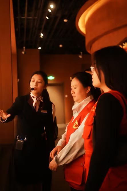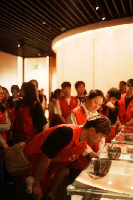活动中,大家在讲解员的带领下,循着历史与文化的脉络,依次参观了“千秋写印·华夏有章——中华版本发展概览”,“互鉴千年·融通未来——海上丝绸之路专题版本展”,“红色印记·映照初心——红色广东专题版本”等核心展区。让党员与入党积极分子们直观领略到中华文明兼收并蓄、融通互鉴的包容特质,重温革命历史,感悟红色基因与中华文脉的一脉相承,坚定了听党话、跟党走的信念。